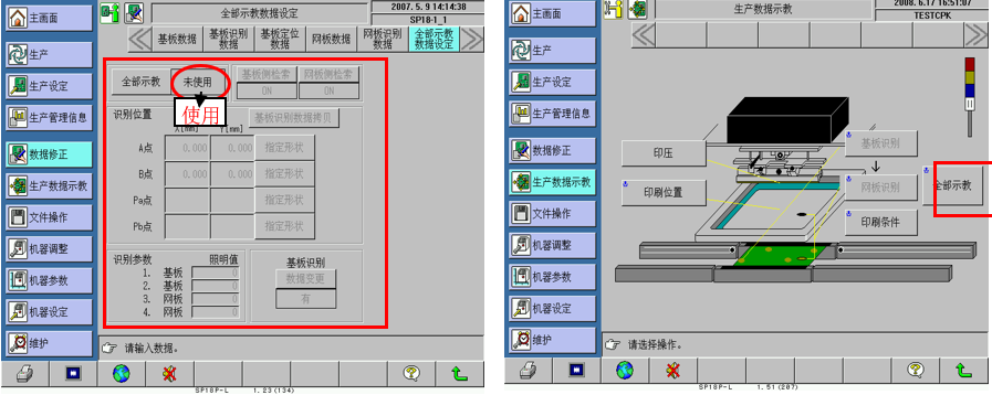 数据修正--〉全部示教--〉数据变更设为"有",PCB及网板进行全部示教或单独进行PCB Mark点识别